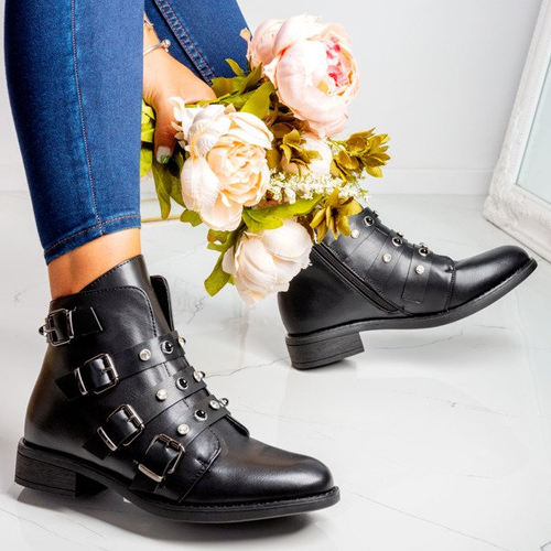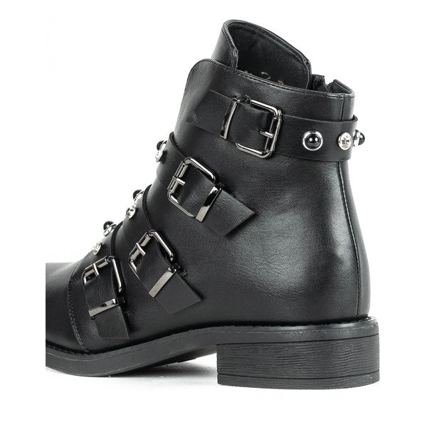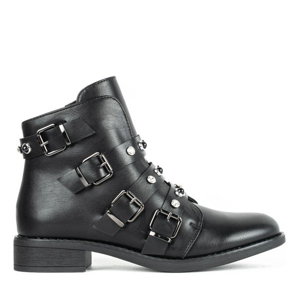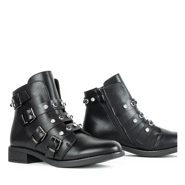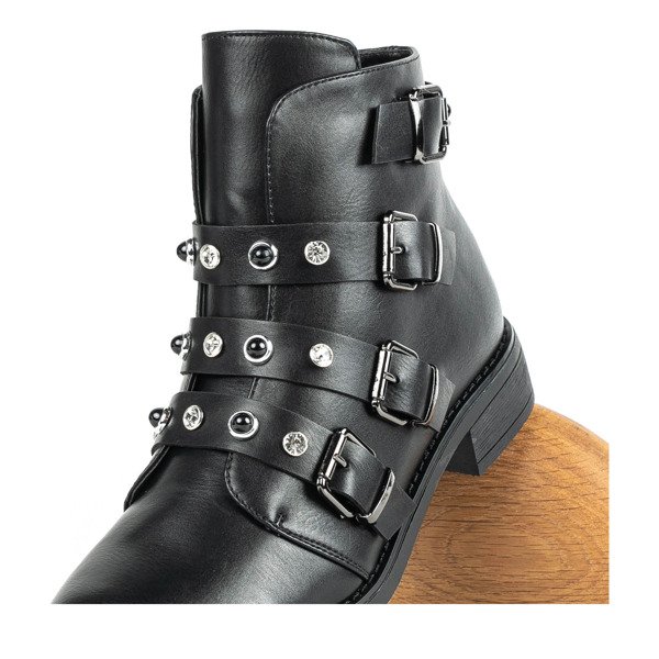 Czarne workery z cyrkoniami i perełkami Leonora - Obuwie