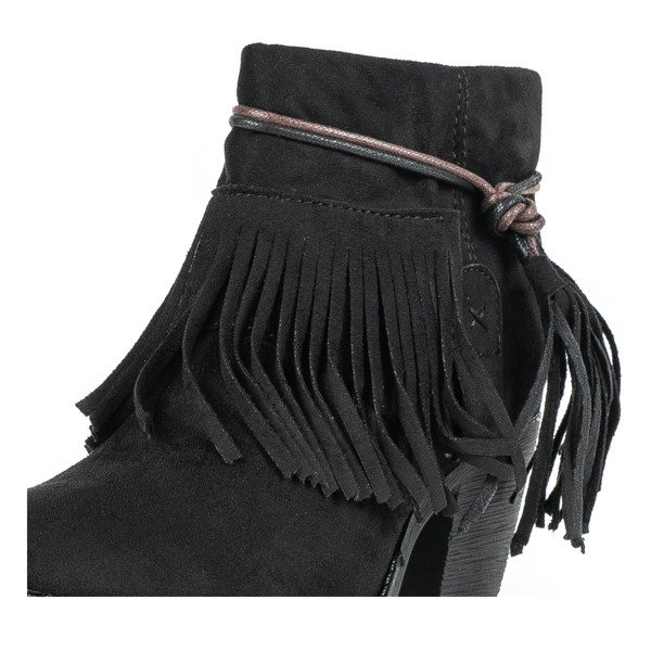 Czarne botki na słupku z frędzelkami Eleanora - Obuwie
