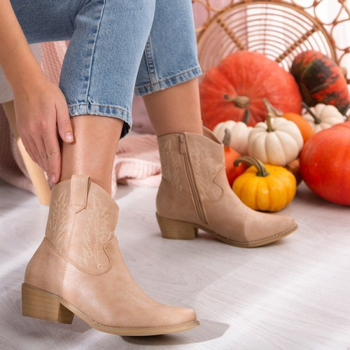 Bottines beiges a'la cowboy talons plats Novilla - Chaussures