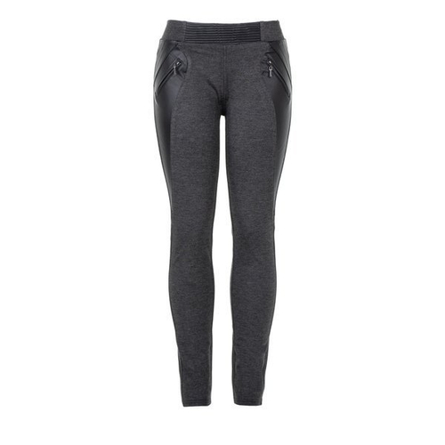 • Treggings pour femmes gris faits d'une combinaison de cuir écologique et de coton. Modèle taille haute, taille élastique. Parfait pour une longue tunique. REMARQUE: Précision de mesure (+/-) 1 cm.