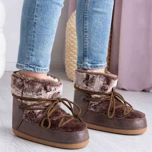 - Bottes de neige à plateforme fantastiques. La tige est une combinaison de cuir éco-nubuck et de fourrure kaki. L'intérieur de la chaussure est isolé avec de la fourrure. La tige est nouée avec une ficelle. Les chaussures présentées sont un complément parf