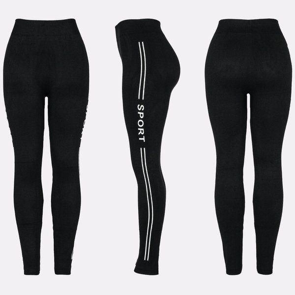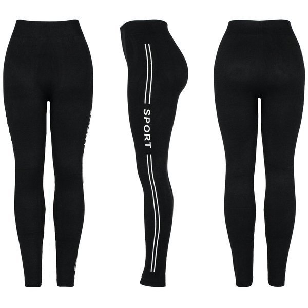 - Leggings longs de sport avec isolation Le matériau est en coton noir. Le pantalon a des inscriptions décoratives en blanc. La large ceinture en caoutchouc s'adaptera au tour de taille. REMARQUE: Précision de mesure (+/-) 1 cm.