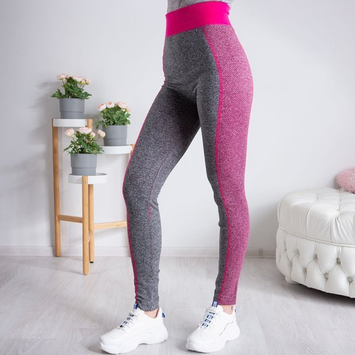 - Guêtres élastiques en tissu épais. Les leggings sont gris et ont des inserts roses. Les vêtements présentés peuvent être utilisés comme sous-vêtements de sport pour les vêtements d'extérieur. REMARQUE: Précision de mesure (+/-) 1 cm.