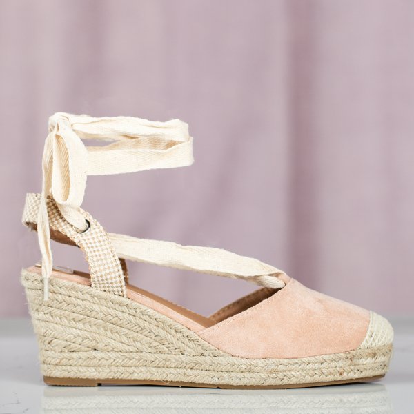 Espadrilles compensées roses avec liens margaretta - Chaussures