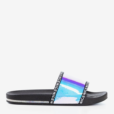 Tongs noires avec bracelet Rinata violet holographique - Chaussures 1