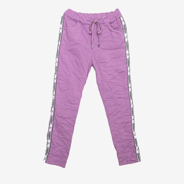 • Pantalon de jogging femme 7/8. Le modèle est en coton, a une taille élastique et des cordons noués. Jambes décorées de rayures. Parfait pour ceux qui apprécient le confort. REMARQUE: Précision de mesure (+/-) 1 cm.