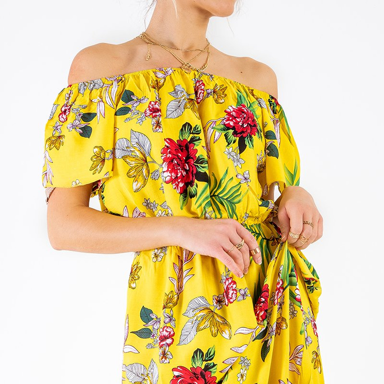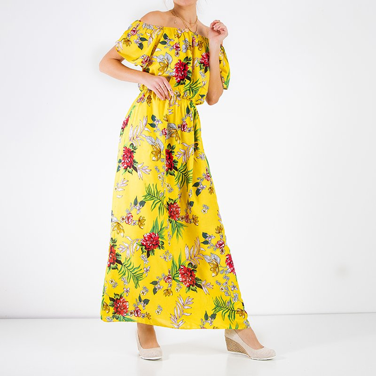 - Robe maxi fleurie légère à la mode. Le modèle a un col et une taille élastiqués, soulignant la taille. La robe parfaite pour l'été! REMARQUE: Précision de mesure (+/-) 1 cm.