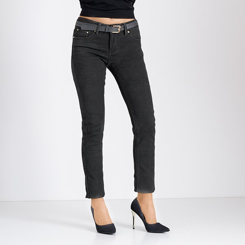 - Pantalon skinny chaud et élégant pour femme en gris. Fait de - velours côtelé. Modèle taille haute avec poches plaquées devant et dos. Fermé par une fermeture éclair et un bouton. Une ceinture est attachée au pantalon. REMARQUE: Précision de mesure (+/-)