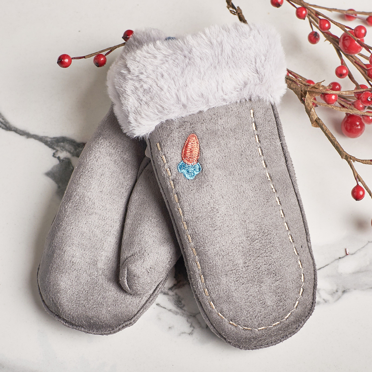 • Gants chauds pour enfants en éco-suède doux. Doublure en fourrure à l'intérieur. Parfait pour les jours froids!
