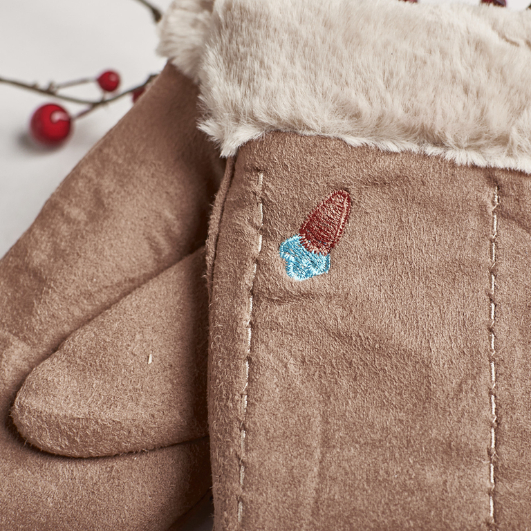 - Gants chauds pour enfants en éco-suède doux. Doublure en fourrure à l'intérieur. Parfait pour les jours froids!