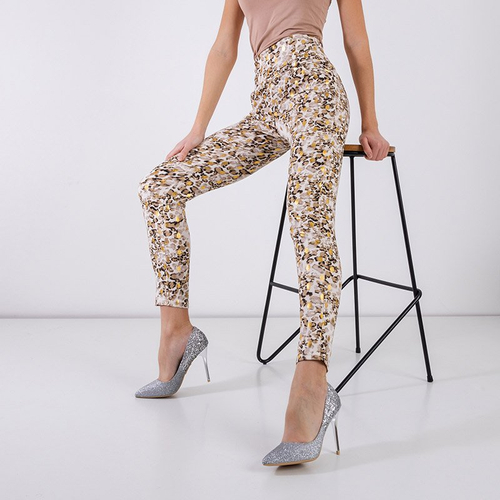 • Treggings élégants pour femmes en tissu extensible à imprimé léopard. Modèle taille haute avec taille élastiquée. De plus, le pantalon a des boutons décoratifs et deux poches dans la partie avant. REMARQUE: Précision de mesure (+/-) 1 cm.