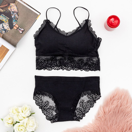 Ensemble lingerie femme noire avec dentelle - Sous-vêtements