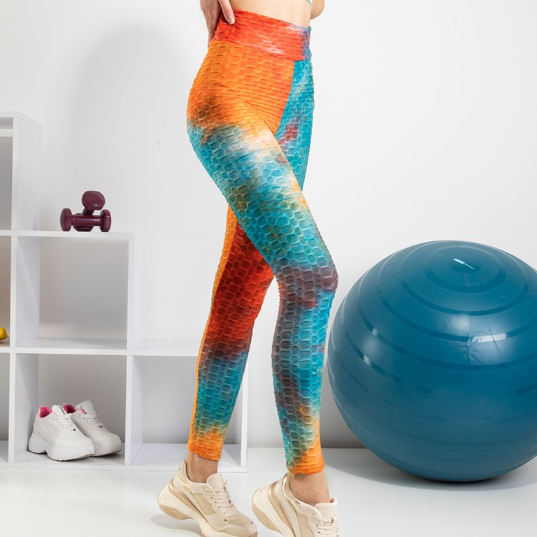 - Legging de sport taille haute pour femme. Le modèle est fait d'un tissu extensible orné de taches. Une large bande élastique à la taille. Ils garantissent la liberté de mouvement pendant l'entraînement. REMARQUE: Précision de mesure (+/-) 1 cm.