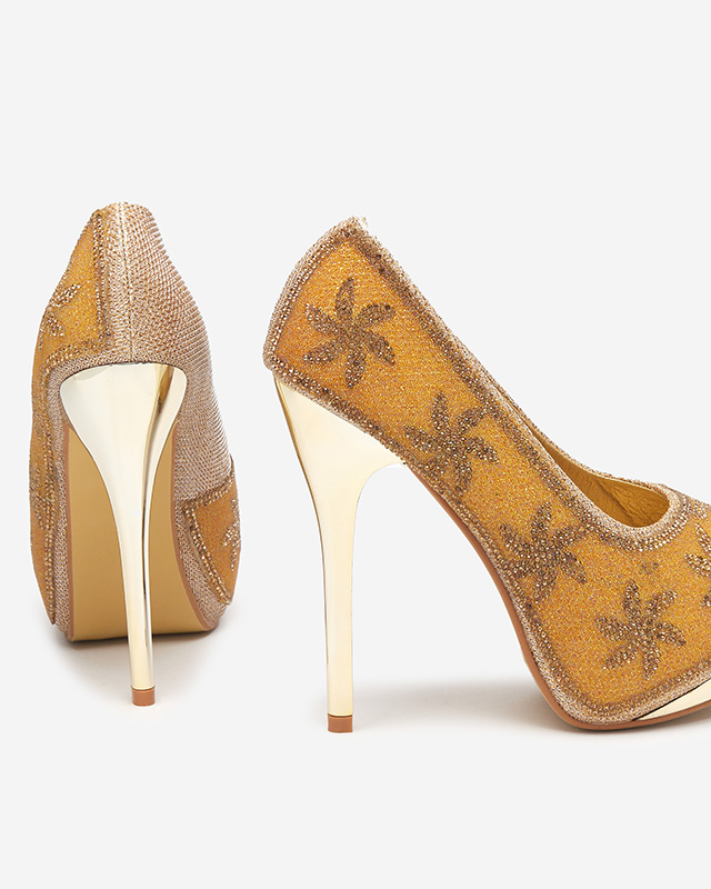 Talons hauts pour femmes en brocart doré et zircons cubiques Yilla - Footwear
