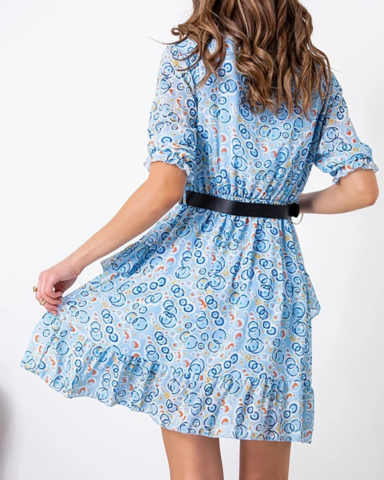 Mini robe femme bleue à motifs - Vêtements
