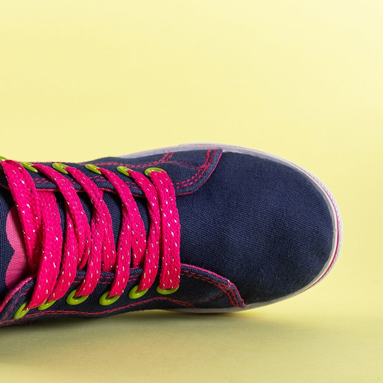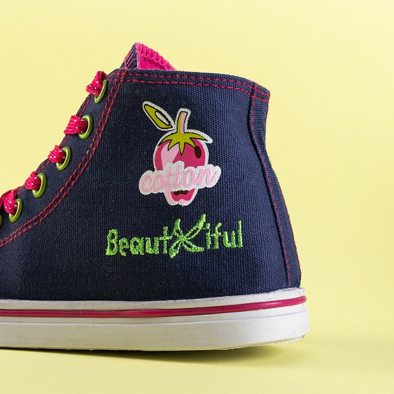 - Belles baskets pour enfants en tissu a'la jeans. Les chaussures présentées sont décorées d'une empreinte. Modèle à lacets et fermeture éclair sur le côté. Des chaussures parfaites pour les journées d'été actives.