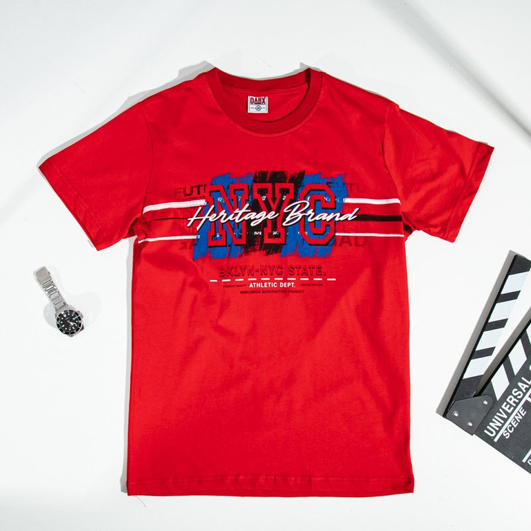 • T-shirt homme à manches courtes en coton. Le modèle est orné d'une inscription colorée sur le devant. Ce t-shirt sera parfait pour les chaudes journées d'été. REMARQUE: Précision de mesure (+/-) 1 cm.