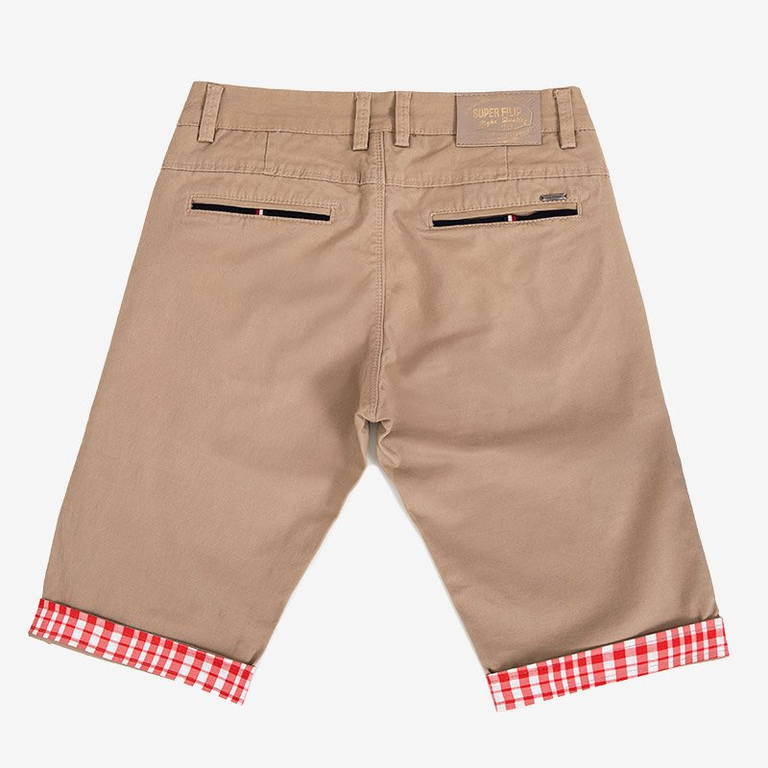 - Short classique pour homme au-dessus du genou en coton. Le modèle est fermé par une fermeture éclair et un bouton, deux poches plaquées sur le devant. Parfait pour les chaudes journées d'été. REMARQUE: Précision de mesure (+/-) 1 cm.