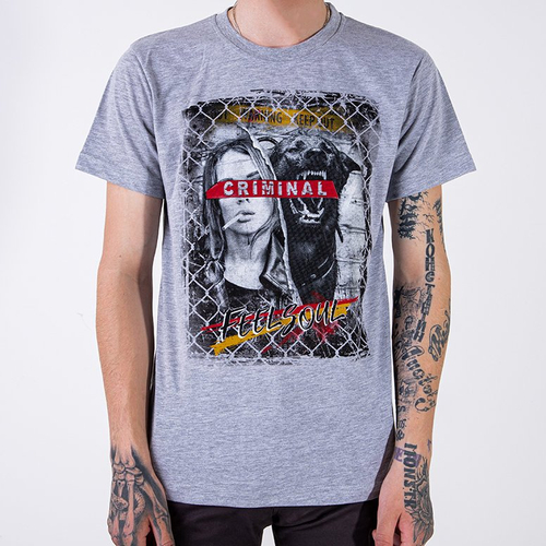 T-shirt homme en coton gris avec imprimé - Vêtements