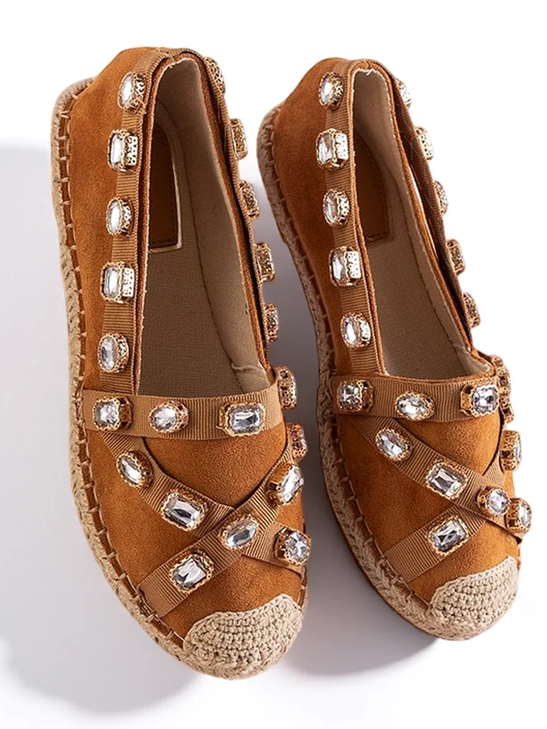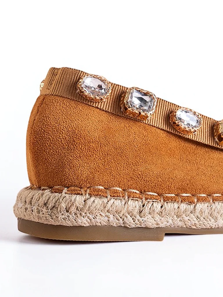 Espadrilles pour femmes avec cristaux Wamba camel - Chaussures