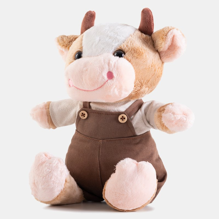 • Adorable jouet de bébé vache, fait de fourrure délicate et douce. La mascotte porte une jolie combinaison. Idée cadeau fantastique. Dimensions : hauteur - 31 cm, largeur - 15 cm.