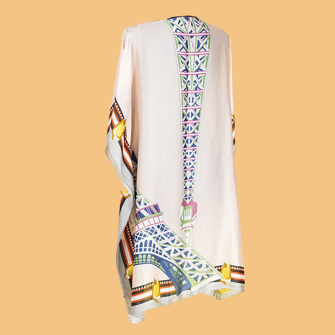 - Nous vous présentons un paréo féminin léger au motif de la tour Eiffel, enfilé par-dessus la tête et cousu sous les bras. Des vêtements pratiques qui vous protègent du soleil en couvrant votre dos et vos épaules. REMARQUE : Précision de mesure (+/-) 1 cm.