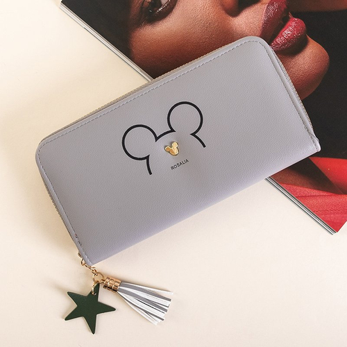 • Portefeuille femme en simili cuir avec fermeture éclair. La fermeture éclair est décorée d'une étoile et d'une frange. Le modèle possède : - 2 compartiments dont 1 avec une poche cachée, - 10 poches dont 8 plus petites pour cartes de paiement ou autres do
