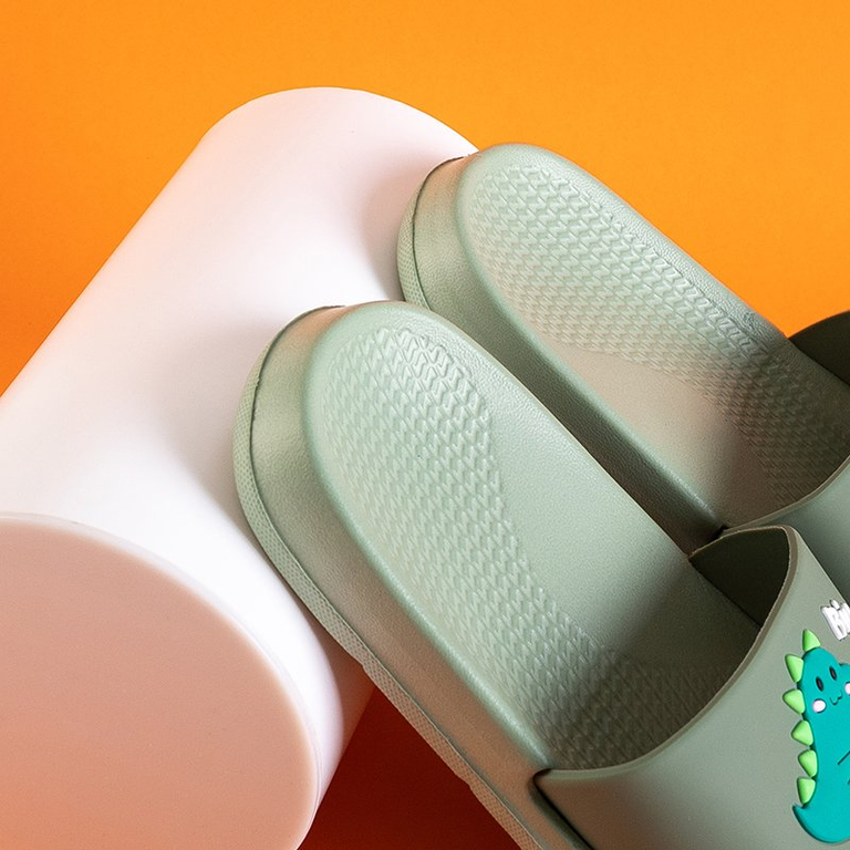 Pantoufles vertes pour enfants avec un dinosaure Dinosik - Chaussures