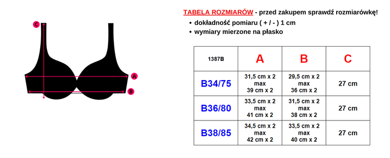- Soutien-gorge push-up rembourré pour femmes en matériau à haute teneur en polyamide. Bretelles amovibles et réglables, fermeture par agrafes au dos. La partie avant est décorée de broderie et de dentelle. REMARQUE : Précision de mesure (+/-) 1 cm.