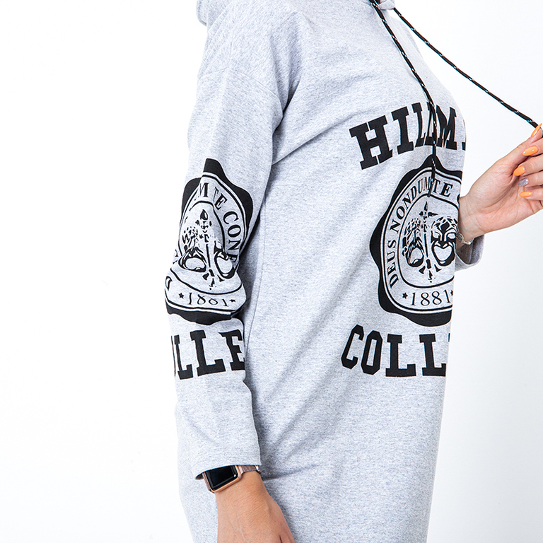Sweat femme gris avec inscriptions et capuche - Vêtements