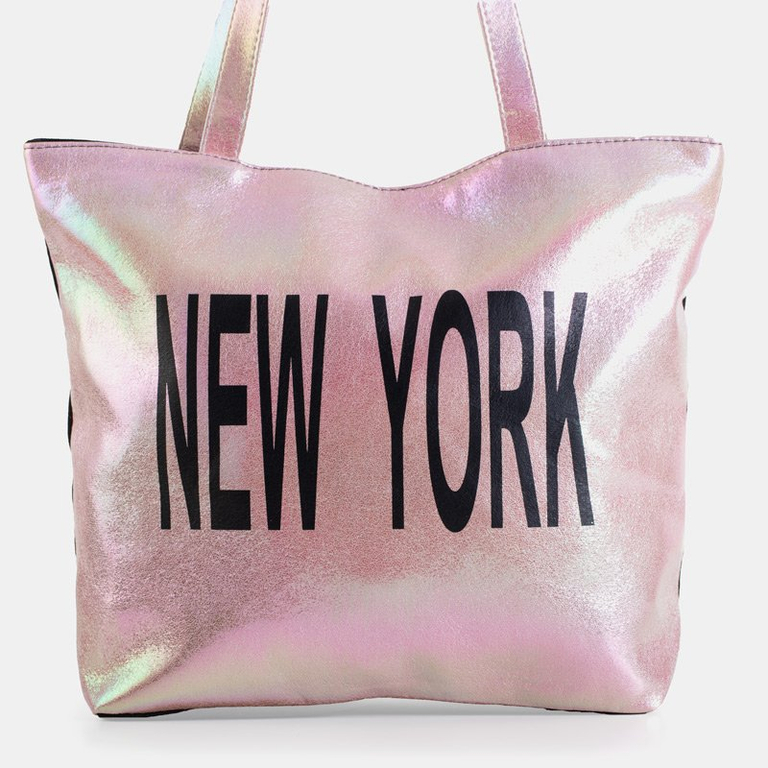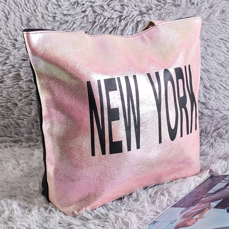 - Grand sac bandoulière femme, orné de l'inscription "NEW YORK". Fait d'une combinaison de tissu et de plastique délicatement froissé. Le modèle est fermé par une fermeture éclair. Parfait pour un usage quotidien, faire du shopping ou à la plage !