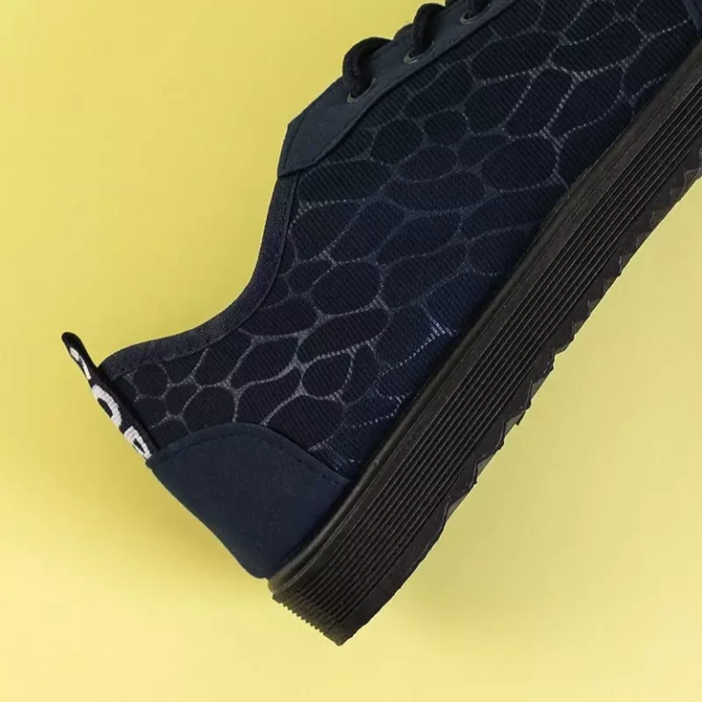 • Chaussures de sport à lacets pour hommes avec semelle en caoutchouc. La tige est en tissu et comporte des empiècements en éco-suède. Remarque : le produit présente des traces de colle sur le matériau.