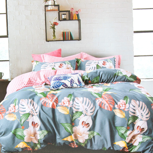 Bleu - vert parure de lit fleuri 200x220 Parure 3 PIÈCES - Linge de lit