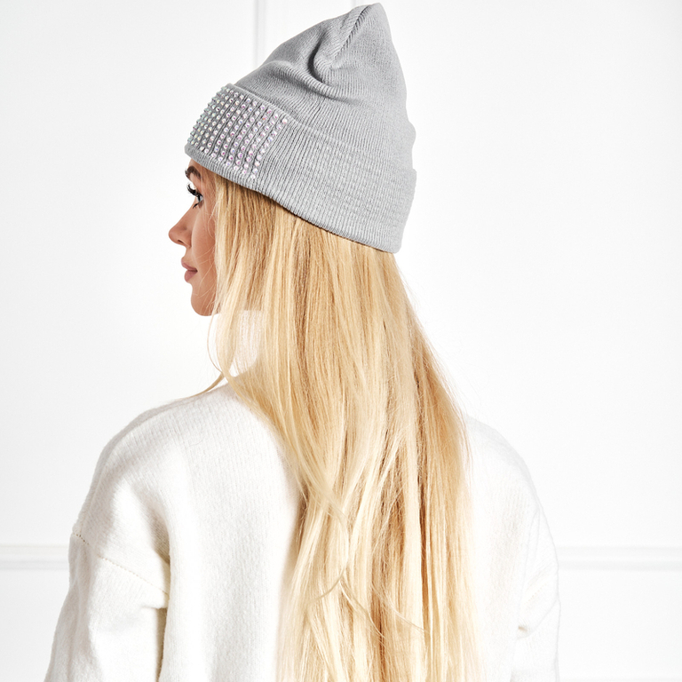 - Bonnet double épaisseur élégant pour femme. Le modèle n'a pas d'isolant et est décoré de zircone cubique avec une finition holographique. Une belle décoration pour le style de tous les jours.