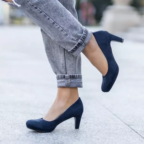 - Escarpins classiques dans l'édition la plus simple en peau de chamois écologique. Talon bas et semelle intérieure en cuir écologique. Nez d'amande. Parfait pour les tenues de soirée ainsi que les jeans ordinaires de tous les jours.