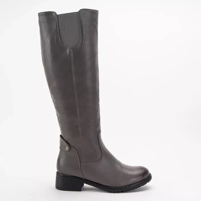 - Bottes hautes classiques pour femmes, en cuir écologique, avec une semelle plate. Le modèle est fermé par une fermeture éclair, entièrement isolé avec de la fourrure douce. Remarque : le produit présente une décoloration sur le matériau.