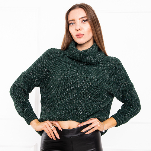 Pull court à col roulé pour femmes vert bouteille - Vêtements