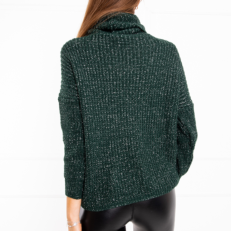 - Pull à col roulé chaud pour femme, fait de matière acrylique parsemée de fil d'argent. Le modèle avec une découpe sur le ventre a des manches longues. Un must have dans la garde-robe de chaque femme ! REMARQUE : Précision de mesure (+/-) 1 cm.
