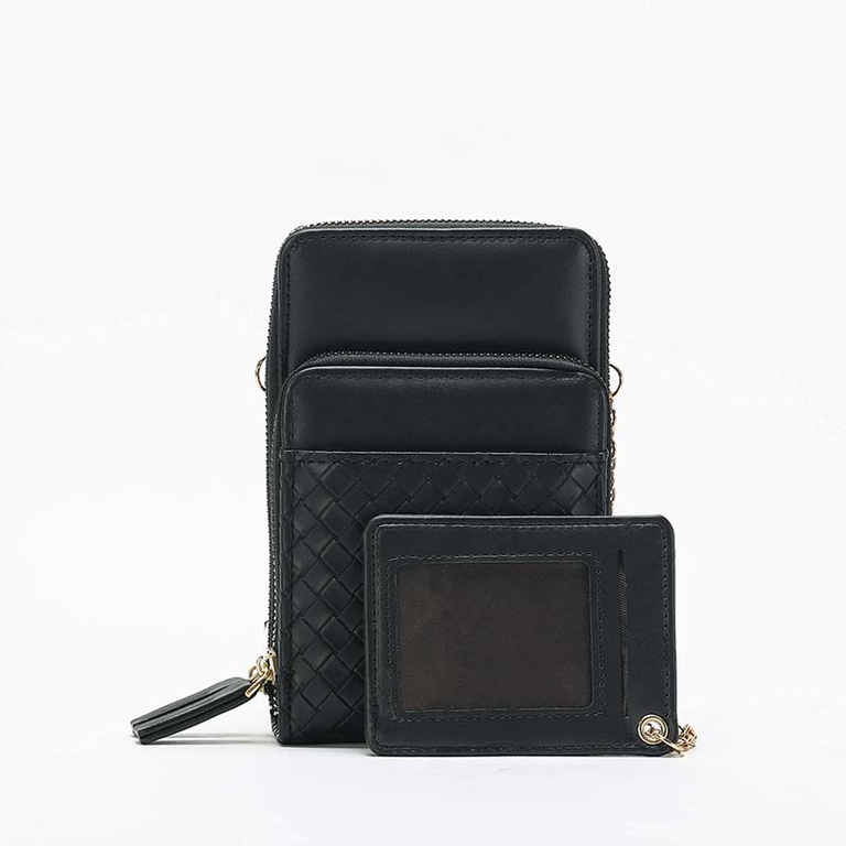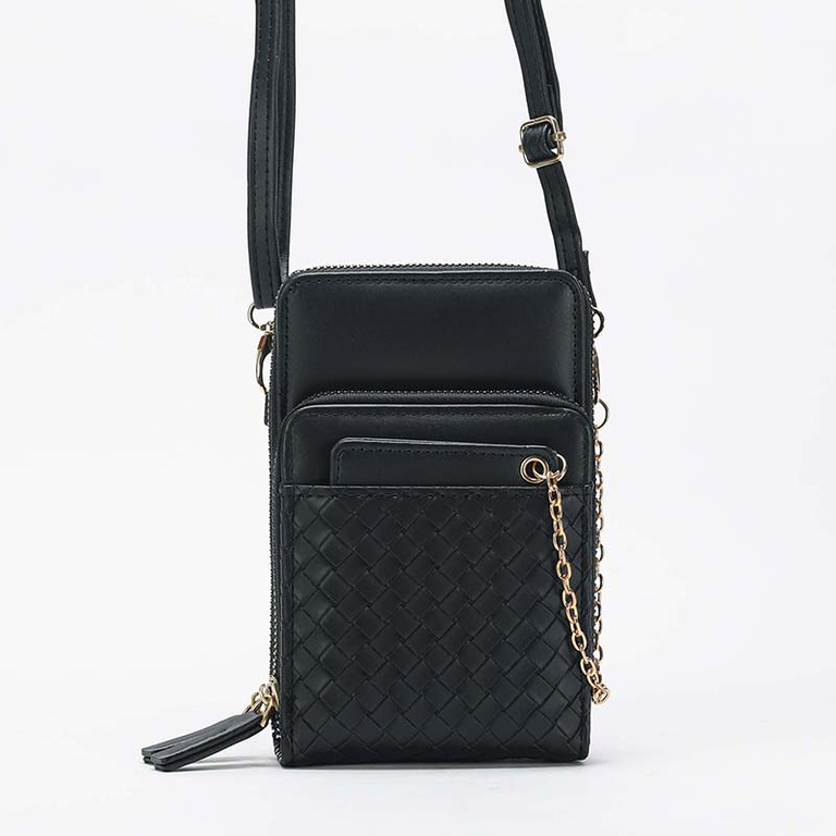 - Mini porte-monnaie épaule pour femme, en cuir écologique. Le modèle possède : - 2 compartiments, - 2 poches extérieures plaquées, - 8 poches pour cartes de paiement ou autres documents, - bandoulière amovible et réglable en plus.