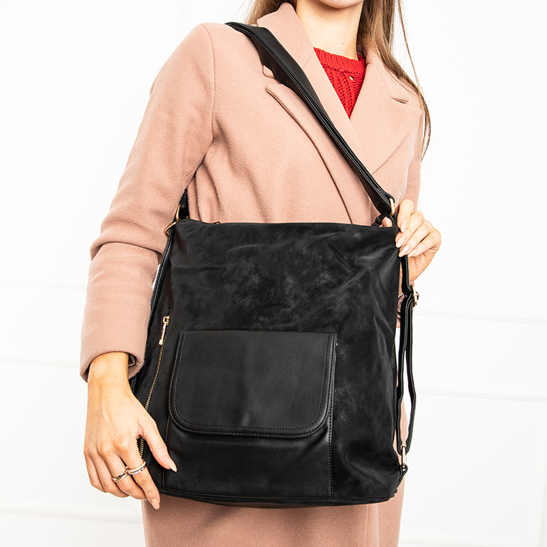- Sac à bandoulière pour femme à la mode, en éco-cuir avec une finition mate. Modèle avec fermoir zippé et anses réglables. Le produit possède : - 3 poches extérieures zippées - 2 avec fermeture éclair, 1 avec aimant, - 5 poches intérieures dont 2 zippées.