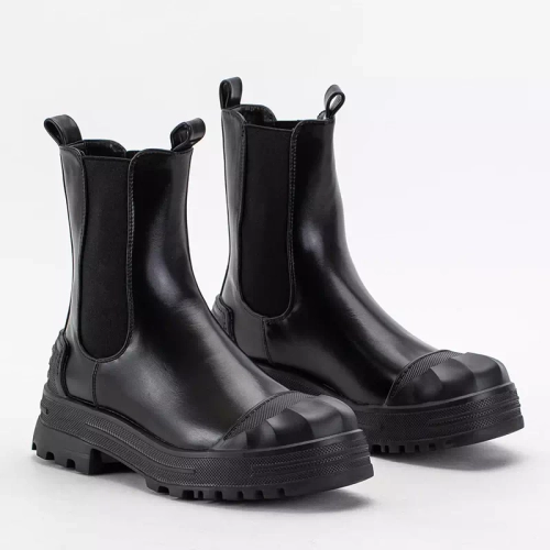 • Bottes hautes pour femmes en cuir écologique. Modèle sans attache, l'intérieur a une isolation délicate, la semelle est en caoutchouc.