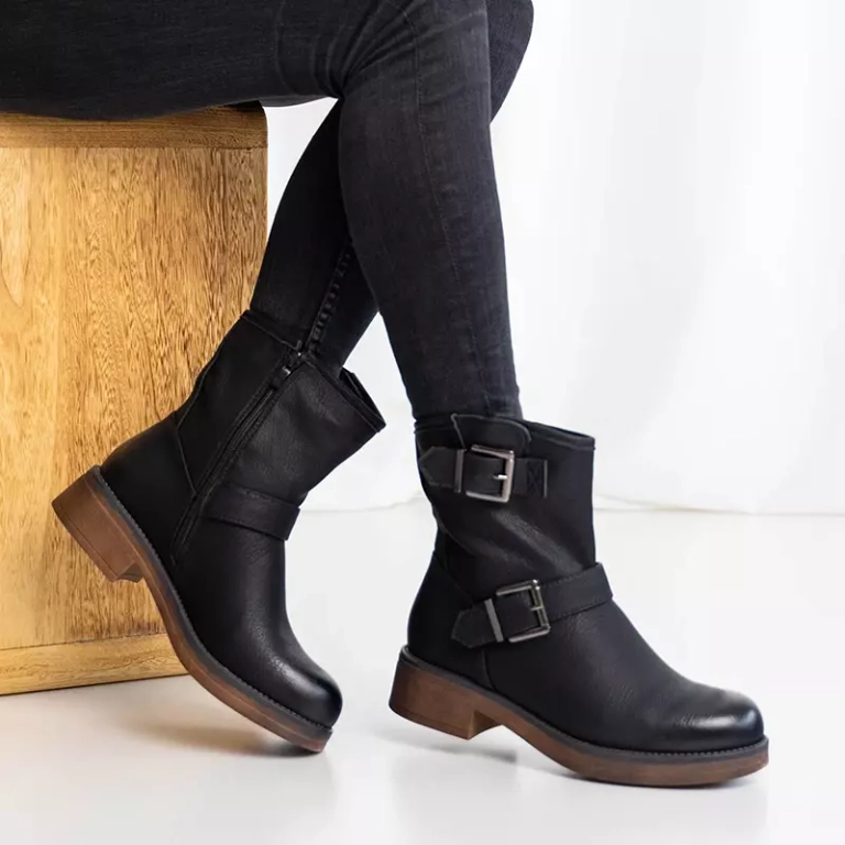 OUTLET Boots femme noires à boucle Invyse - Chaussures