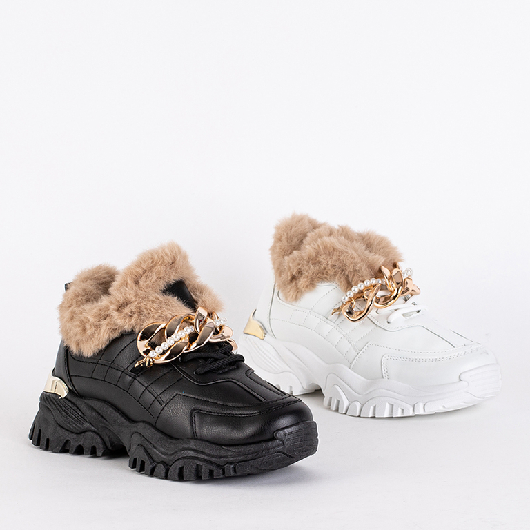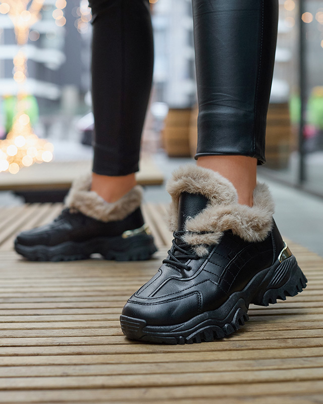 Chaussures de sport pour femmes noires avec fourrure Flixi - Chaussures