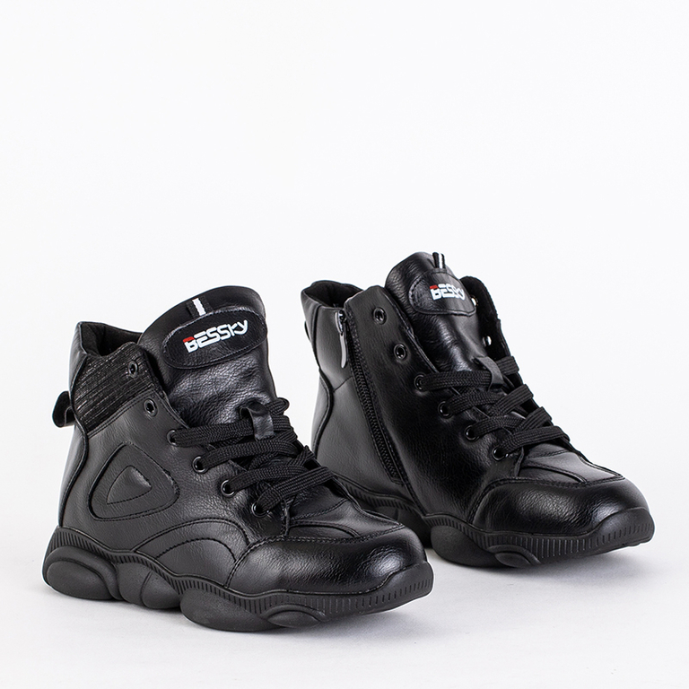 • Superbes bottines fille sur semelle plate au style sportif, en éco-cuir. L'intérieur de la chaussure est isolé avec une fourrure épaisse agréable au toucher. Tige à lacets et zippée.