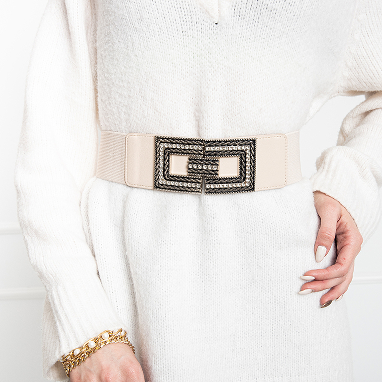 Ceinture élastique pour femme beige avec boucle en argent avec zircone cubique - Accessoires