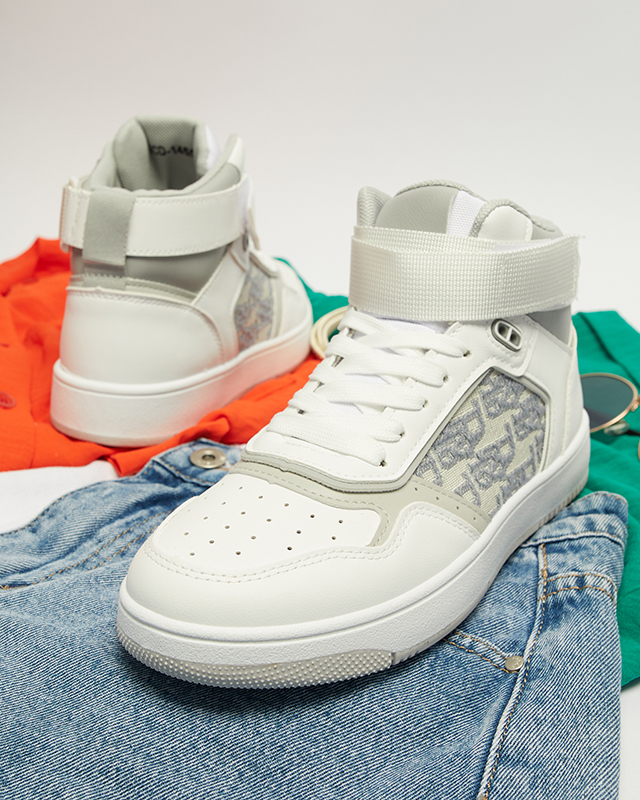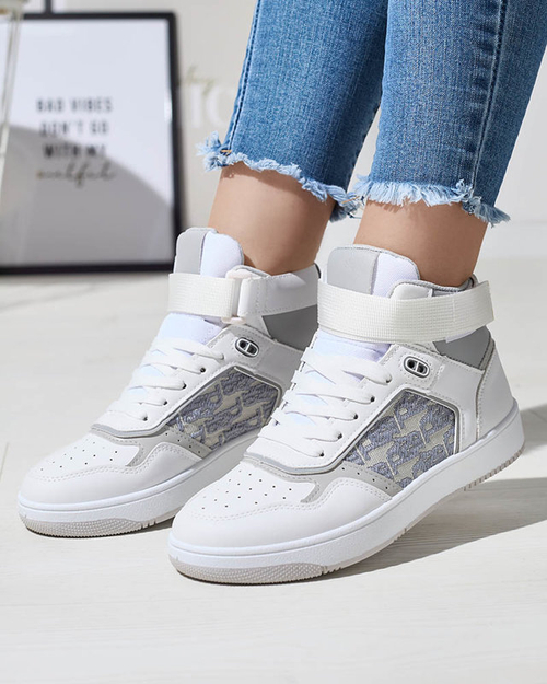 - Chaussures de sport élégantes pour femmes avec une tige plus haute en une combinaison d'éco-cuir et de tissu. Modèle à lacets et fermeture par velcro réglable, insert en tissu au milieu. Ces chaussures de sport pour femme s'associeront très bien avec un j