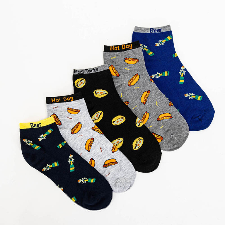 • Lot de cinq paires de chaussettes pour homme avec motifs rigolos. Ensemble parfait au quotidien. Chaussettes hautes en coton.