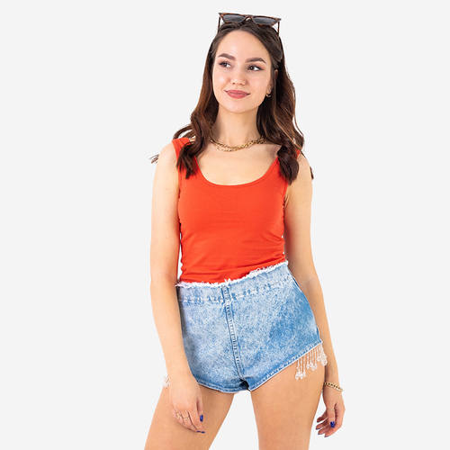 - Un débardeur femme intemporel à fines bretelles dans une coupe universelle, confectionné en tissu de coton. Parfait pour les shorts et les jeans. REMARQUE : Précision de mesure (+/-) 1 cm.