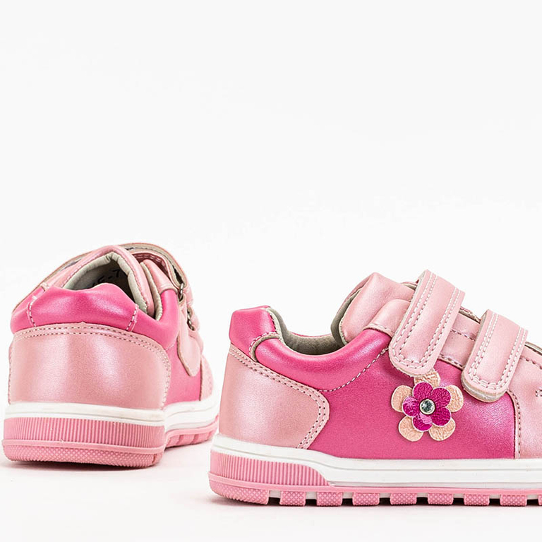 - Chaussures de sport confortables pour enfants en cuir écologique avec des fleurs sur les côtés de la tige. Fermeture velcro. Des chaussures parfaites pour les jours de printemps!