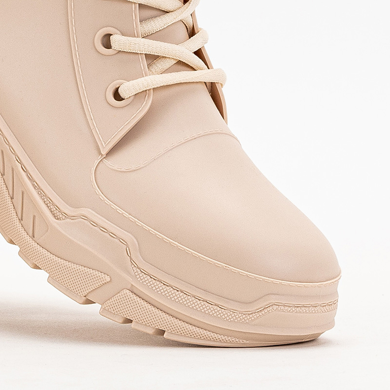 - Bottes pour femmes uniques à la trappeur en caoutchouc. L'intérieur de la chaussure est doublé de tissu. Tige à lacets. CHAUSSURES FEMME CRÈME BOTTINES AIAX